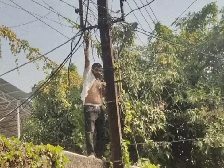 बिजली पोल पर चढ़कर धमकी