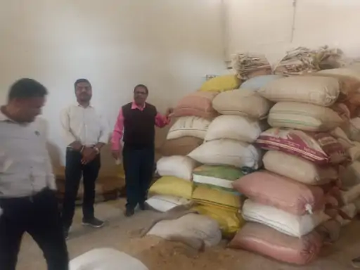 • ग्राम कोनचरा के यंग प्रोविजन स्टोर से 117 कट्टी (46 क्विंटल 80 किलो) धान जब्त