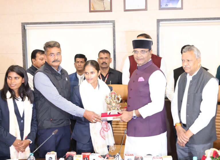 टीटी नगर स्टेडियम में विजेता खिलाड़ियों का सम्मान सहकारिता, खेल एवं युवा कल्याण मंत्री श्री विश्वास कैलाश सारंग ने रविवार को टीटी नगर स्टेडियम, भोपाल में ब्लाइंड वुमन्स टी20 वर्ल्ड कप–2025 की विजेता भारतीय महिला दृष्टिबाधित क्रिकेट टीम की मध्यप्रदेश की खिलाड़ियों से सौजन्य भेंट की। इस अवसर पर उन्होंने खिलाड़ियों का उत्साहवर्धन करते हुए उनके ऐतिहासिक प्रदर्शन की सराहना की। मध्यप्रदेश की बेटियों ने बढ़ाया प्रदेश का मान मंत्री श्री सारंग ने कहा कि मध्यप्रदेश की प्रतिभाशाली खिलाड़ी सुनीता सराठे (नर्मदापुरम–पिपरिया), दुर्गा येवले (बैतूल) एवं सुषमा पटेल (दमोह) ने विश्व कप विजेता भारतीय टीम का हिस्सा बनकर प्रदेश और देश का नाम रोशन किया है। उन्होंने कहा कि विश्व कप जीतने वाली भारतीय टीम में मध्यप्रदेश की बेटियों की भागीदारी पूरे प्रदेश के लिए गर्व का विषय है। लगन और मेहनत से हासिल की अंतरराष्ट्रीय पहचान मंत्री श्री सारंग ने कहा कि आज मध्यप्रदेश के खिलाड़ी खेलों के हर क्षेत्र में निरंतर उत्कृष्ट प्रदर्शन कर रहे हैं और लगभग हर राष्ट्रीय टीम में प्रदेश के खिलाड़ी देश का प्रतिनिधित्व कर रहे हैं। उन्होंने कहा कि हमारी बेटियों ने अपनी मेहनत, लगन और संकल्प से प्रदेश का नाम राष्ट्रीय और अंतरराष्ट्रीय स्तर पर गौरवान्वित किया है। मुख्यमंत्री की घोषणा: ₹25 लाख की प्रोत्साहन राशि मंत्री श्री सारंग ने जानकारी दी कि मुख्यमंत्री डॉ. मोहन यादव ने शनिवार को इन खिलाड़ियों को सम्मानित करते हुए प्रत्येक खिलाड़ी को ₹25 लाख की प्रोत्साहन राशि देने की घोषणा की है। इसमें ₹10 लाख नकद एवं ₹15 लाख फिक्स्ड डिपॉजिट के रूप में दिए जाएंगे। साथ ही खिलाड़ियों के कोच को भी ₹1–1 लाख की प्रोत्साहन राशि प्रदान करने का निर्णय लिया गया है। दृष्टिबाधित खिलाड़ियों को मिलेगा निरंतर सहयोग उन्होंने कहा कि राज्य सरकार दृष्टिबाधित खिलाड़ियों को आगे भी हर संभव सहयोग प्रदान करेगी तथा राष्ट्रीय व अंतरराष्ट्रीय प्रतियोगिताओं के लिए आवश्यक प्रशिक्षण, सुविधाएं और संसाधन उपलब्ध कराए जाएंगे, ताकि प्रदेश के खिलाड़ी भविष्य में भी देश का नाम रोशन करते रहें। गरिमामय उपस्थिति इस अवसर पर संचालक खेल एवं युवा कल्याण विभाग श्री राकेश गुप्ता, संयुक्त संचालक श्री बी.एस. यादव, महिला खिलाड़ियों के कोच श्री सोनु गोलकर, श्री ओमप्रकाश पाल, श्री दीपक पाहड़े सहित खेल विभाग के अधिकारी एवं प्रशिक्षक उपस्थित रहे। नेपाल को हराकर ऐतिहासिक जीत भारतीय महिला ब्लाइंड क्रिकेट टीम ने महिला टी20 वर्ल्ड कप क्रिकेट 2025 के फाइनल मुकाबले में नेपाल को हराकर ऐतिहासिक जीत दर्ज की। भारतीय टीम में मध्यप्रदेश की तीन प्रतिभावान खिलाड़ी शामिल थीं। इनमें ऑ