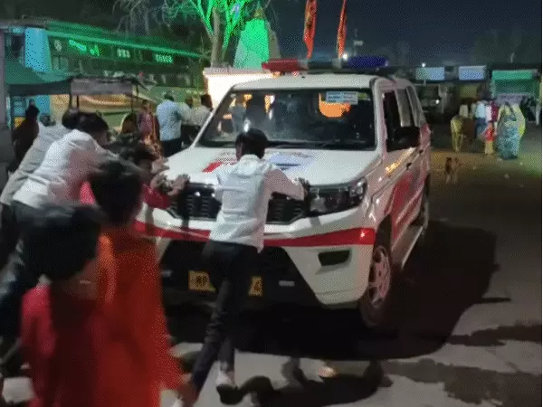 जबलपुर में डायल-112 की हालत खराब: बच्चों से धक्का लगवाकर स्टार्ट करनी पड़ी पुलिस गाड़ी