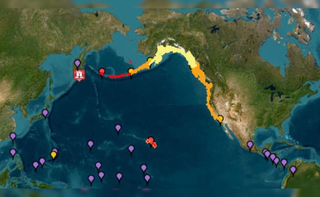 Pacific Tsunami Warning Center ने अमेरिका के Hawaii, Alaska और California Coast को लेकर चेतावनी जारी की है। Ventura, Los Angeles, Santa Barbara, और San Luis Obispo काउंटियों में तेज लहरों की आशंका है।